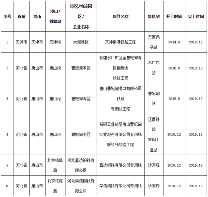 12.加快推進鐵路專用線建設。各地要逐一核實《交通運輸部等九部門貫徹落實國務院辦公廳〈推進運輸結構調整三年行動計劃(2018-2020)〉的通知》中鐵路專用線重點建設項目(見附件2)落實情況,按照《關于加快推進鐵路專用線建設的指導意見》要求,積極推進鐵路專用線建設;2019年10月底前,各地要對大宗貨物年貨運量150萬噸及以上的大型工礦企業和新建物流園區鐵路專用線建設情況、企業環評批復要求建設鐵路專用線落實情況等進行摸排。對工程進度滯后的,要分析查找原因,分類提出整改方案,確保2020年基本完成。若涉及規劃調整、項目變更、企業搬遷退出等因素不再建設的,地方可提出變更申請,由主管部門確認。