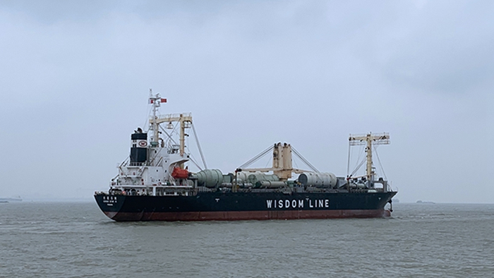 11月18日早晨8點整,滿載安徽科達潔能南山印尼項目四千余噸貨物的“天星三號”貨輪緩緩駛離江蘇張家港港新重裝碼頭,前往印尼賓坦島業主自建碼頭。安徽科達潔能常務副總經理白勇、廣東科達潔能國際業務支持中心總監王凱蓬及相關單位的負責人出席了本次首船啟航儀式。