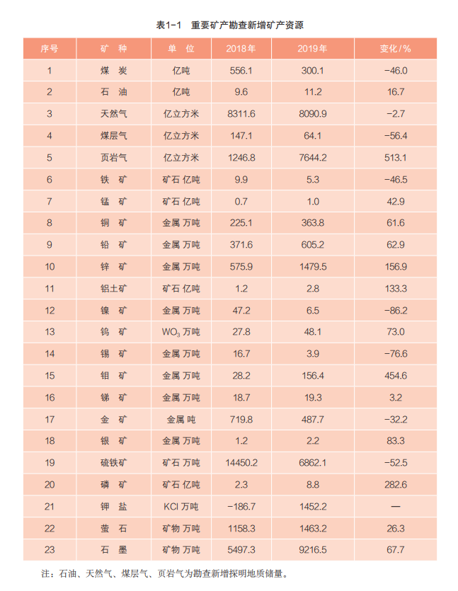 主要金屬礦產(chǎn)中錳礦、銅礦、鉛礦、鋅礦、鎢礦、鉬礦、銀礦等新增明顯,鐵礦、鎳礦、錫礦、金礦明顯下降。非金屬礦產(chǎn)中磷礦、石墨明顯增長。